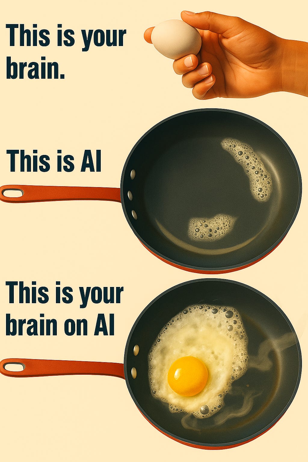 A recent MIT study on AI is making the rounds, and it’s one of the most important pieces of research on AI I’ve read to date. It’s not about what AI can do for us; rather, it’s about what AI does to us, and that’s a far more important consideration. I took the liberty of adapting an ad campaign from the 1980s to make the point (perhaps some of you remember the ad).